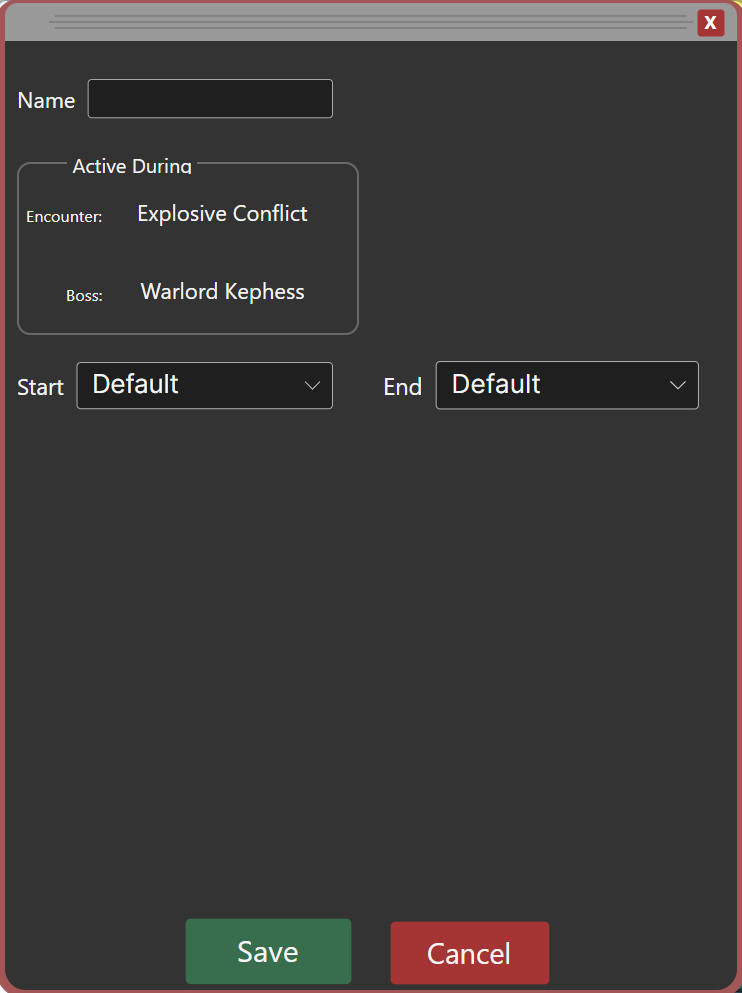 Here on the phase modification screen is where you'll set up and/or modify phases. Phases “start” when their “Start” clause has been met, and they “end” when their “End” clause is met (or if Default is selected, they end when a new phase starts)